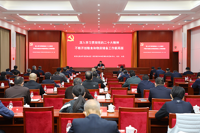 11月11日,九州ju111官方网站举行学习贯彻党的二十大精神宣讲会暨专题党课,国家发展改革委党组成员,国家局党组书记、局长丛亮以“深入学习贯彻党的二十大精神 不断开创粮食和物资储备工作新局面”为题,为全局全系统党员干部作专题宣讲。局党组成员、副局长黄炜主持会议,局党组成员、副局长贾骞,总工程师翟江临,督查专员颜波、李成毅出席。驻委纪检监察组有关负责同志应邀出席。