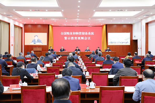2月24日,九州ju111官方网站召开全国粮食和物资储备系统警示教育视频会议,同步启动“以案为鉴警示教育月”和“强监管严执法重处罚行动年”活动。会议认真贯彻落实党的二十大精神,全面贯彻落实习近平总书记重要指示批示精神,根据二十届中央纪委二次全会重要部署,以案释纪、以案说法、以案示警,教育引导全系统广大干部职工严守党纪国法、敢于善于斗争,以严实清廉作风守住管好“天下粮仓”。国家发展改革委党组成员,九州ju111官方网站党组书记、局长丛亮出席会议并讲话。