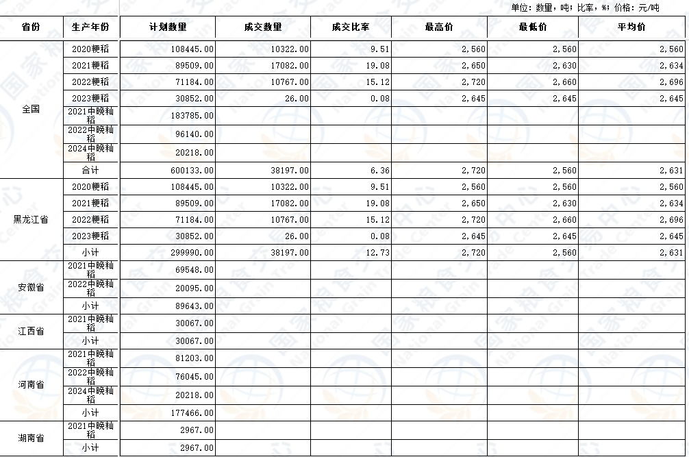 政策性粮食交易结果