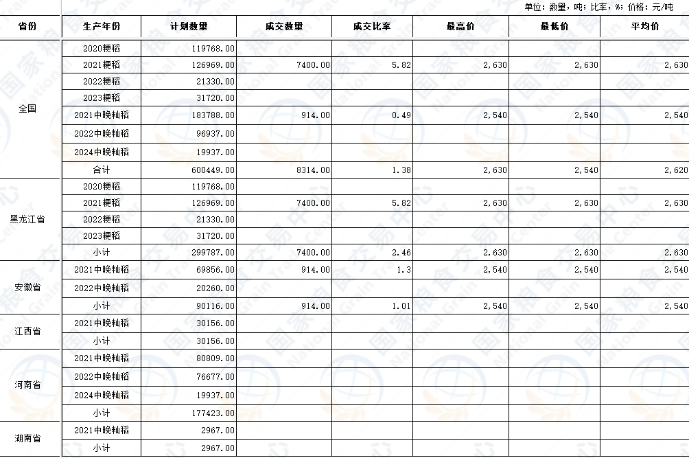 政策性粮食交易结果